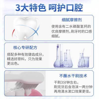 采用摩擦剂制成,口感十分细腻,清洁的同时为你呵护牙齿。采用锡纸封口,更加安全卫生,防止牙膏被污染。
