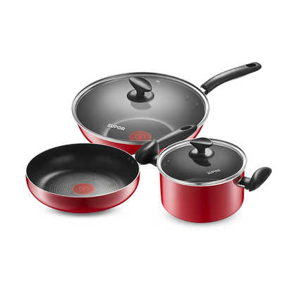 当油温达到合适温度时,锅具中心的火红点会变成实心全红状态,实现油温可见,让烹饪小白能轻松把握住下菜时机。
