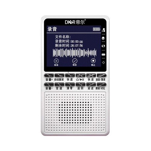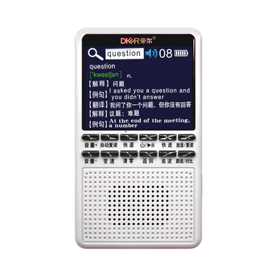 帝尔的这款复读机,带有单词翻译功能,对屏幕出现不懂的单词,抓取后诠释音标中英文译文,并伴随真人发音。