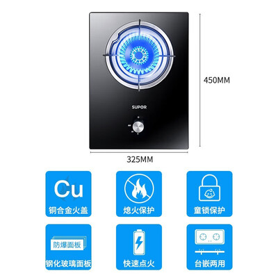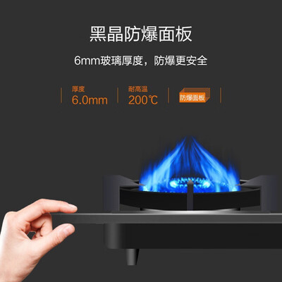 使用铜材料火盖,防锈防堵更耐用,燃气灶使用寿命长。设有防爆面板,受到冲击或高温不爆裂,烹饪时更安心。