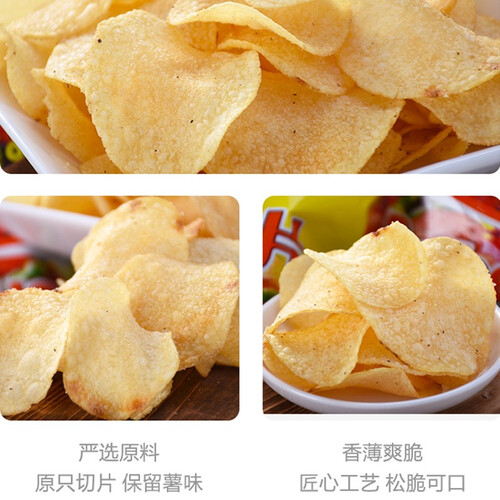 采用精粹植物油,拥有丰满的香气,激发马铃薯内在香气。采用原片薄切工艺,造型纤薄,打造清爽的酥脆口感。
