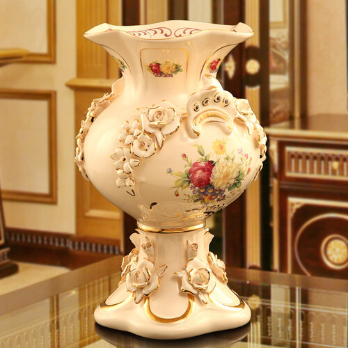该款花瓶高端大气,洋溢贵族气息,是欧式家装的不错选择。采用环保耐用的优质瓷土,高温煅烧手工打磨而成,釉面光滑细腻。