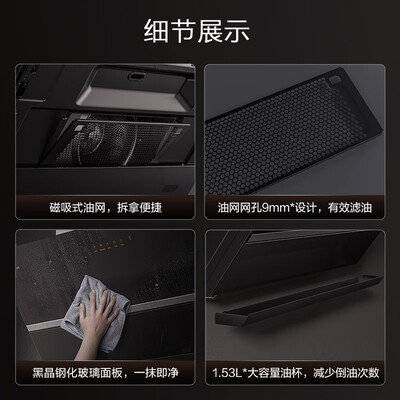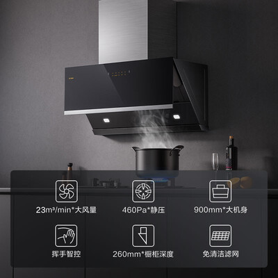 搭载了手感智控技术,挥手就能调节风力的大小,使日常操作更便捷。拥有310mm的大隔烟屏,拢烟效果更好,油烟不会逸散。
