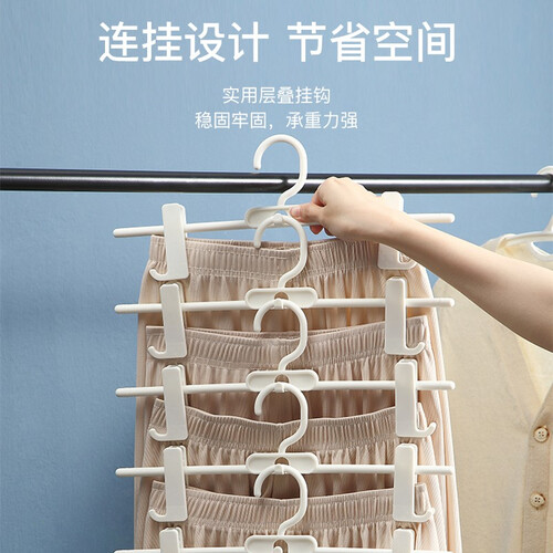 以优质PP为材打造,防晒性佳,不容易老化。它还自带连挂挂钩,多裤架可叠加悬挂,牢靠稳固,巧妙利用衣柜空间。