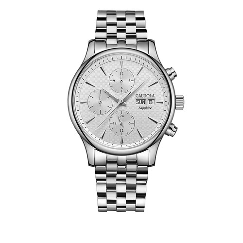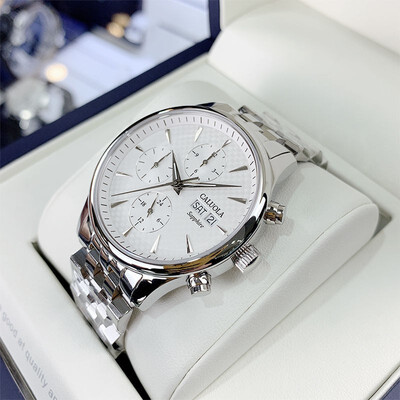 纯白色的表盘加上铁质表带简约又时尚,同时设置防水、夜光等多功能,可适用于多种场所,表盘油压纹理塑造层次感,更显绅士品味。