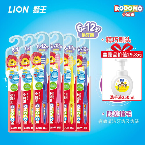 0.01进口超软细毛,温和呵护宝宝稚嫩的牙龈。双重适齿植毛,有效清洁牙齿及齿缝。精巧刷头,适合幼童小嘴型。