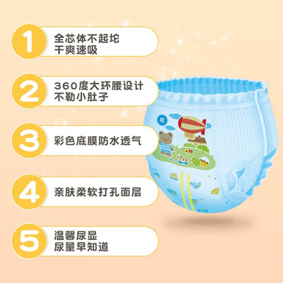 此款拥有舒适柔软的打孔面层,排气小孔多,能够及时排掉宝宝湿气;采用全芯体材质,吸收量大,能够迅速干爽吸收。