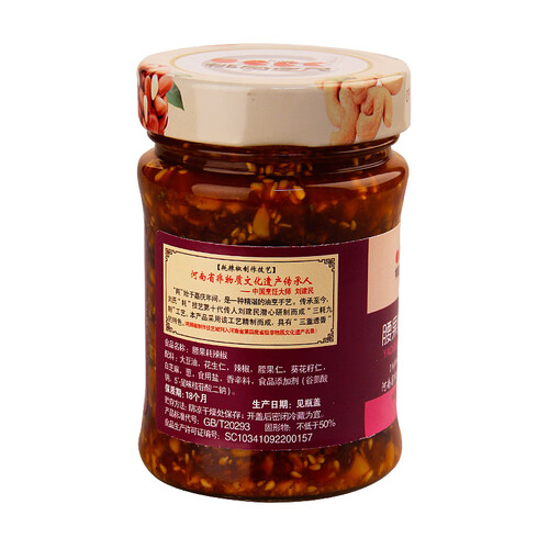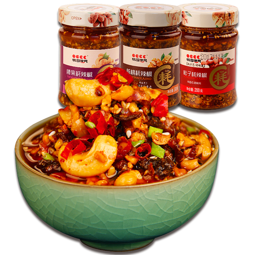 传承独特的三耗九制技术,历经三种火候和九道工序精心熬制而成,辣椒酱酥香味美、辣而不燥,好吃又不上火,让你放心享美味。