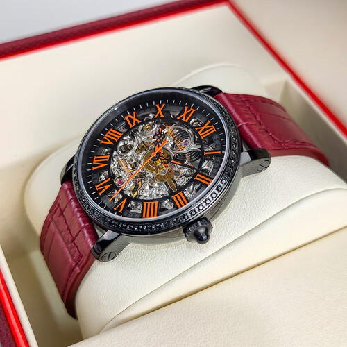 表盘采用镂空设计,富有层次感的同时可以欣赏到机械运转的魅力。表带甄选牛皮材质打造,具有清晰的纹理,亲肤舒适。