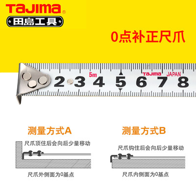双色双面尺带,两面均可测量;0点补正尺爪设计,移动尺爪可以修正测量值;锁定按钮设计,手感光滑舒适。