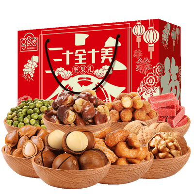 山楂条、红枣、锅巴等丰富零食小吃,打破坚果单一口感。核桃、夏威夷果、小白杏坚果,带来多种营养元素。