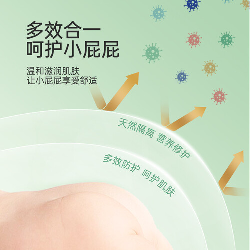 温和植物配方,臻护宝宝娇嫩肌肤,有效隔离尿便刺激带来的不适感。蕴含山茶籽油成分,能形成保护屏障,持久滋养肌肤。