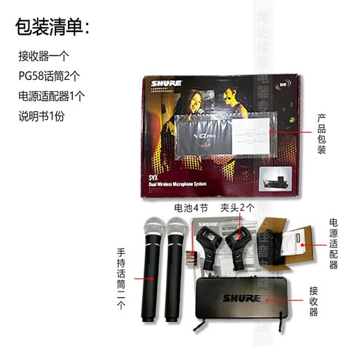 舒尔 一拖二无线双手持麦克风