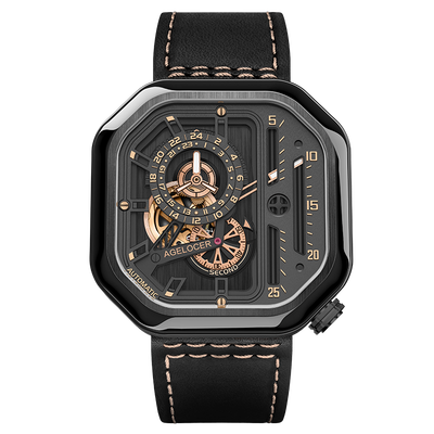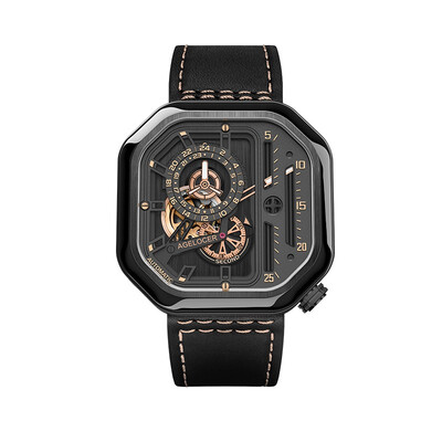 立体重叠的表盘设计,丰富视觉层次。展现机械艺术美感,皮质表带设计,融入撞色的精细走线,很有格调。
