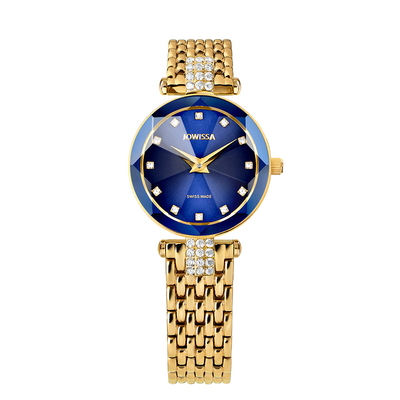 此款手表采用菱形立体切割工艺,表镜质感高级,佩戴更加光彩照人;刻度镶嵌水钻,迷人闪耀,塑造优雅都市女性形象。