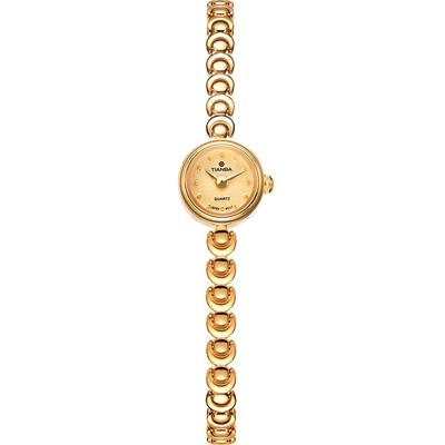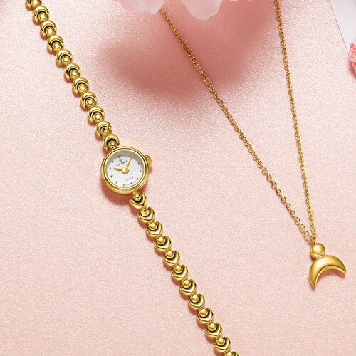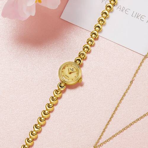 精致手链式女表设计,时尚玲珑感十足,佩戴腕间俘获温柔少女气质。质感磨砂表盘,触感细腻,如樱桃般饱满。