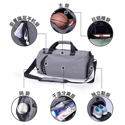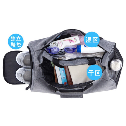 内置干湿分离隔层,可防泳衣、洗漱用品等,干净又卫生,搭配独立鞋位设计,方便实用。