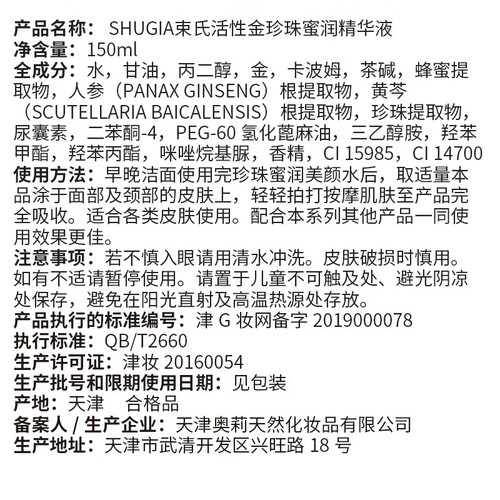 精选蜜蜂萃取精华、珍珠提取物及金箔微粒,更促进有效营养成分吸收。赋予良好的保湿效果,增加肌肤弹力。