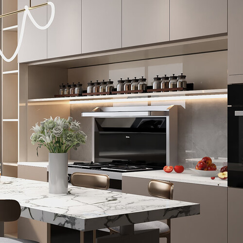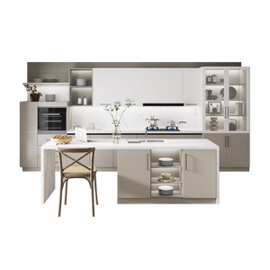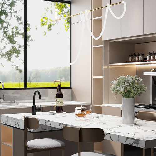 现代简约风,融合欧式古典风格,纯净的色系,带出清新的田园风情。采用坚硬的石英石台面,耐磨防渗透,容易清洁打理。
