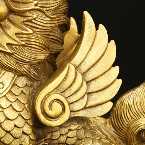 采用精铸打磨,经过多道工序,细节清晰精美,多个尺寸可选,造型独特麒麟脚踩元宝,象征着黄金满屋。