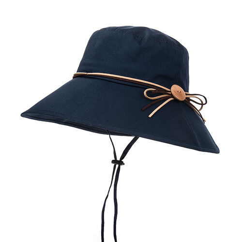 采用木扣和蝴蝶结装饰帽身,增添吸睛亮点,提升视觉美感,充满雅致气息,衬托优雅气质。藏青色渲染,低调耐看又时尚。