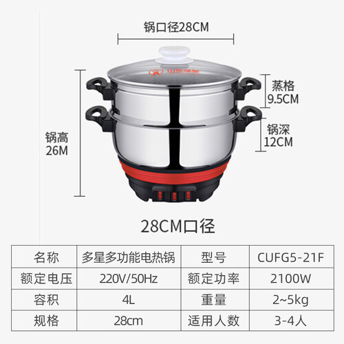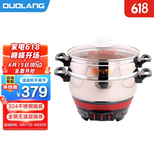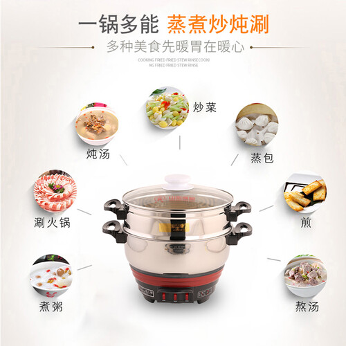 采用环型加热管的设计,让受热更加均匀,不容易糊锅底。采用加大防烫把手,能够防止手部烫伤,使用更加安心。