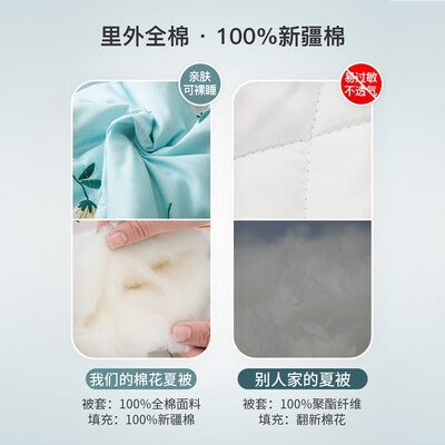 纯棉面料触感细腻,色彩柔和;采用细纤维填充,松软透气,不会闷热出汗;美观定型,锁定被胎不易变形。