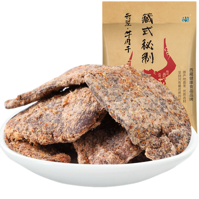 牦牛肉质紧实而且野性十足,更有质感和韧性,自然风干的设计,浓缩精华留存营养物质。