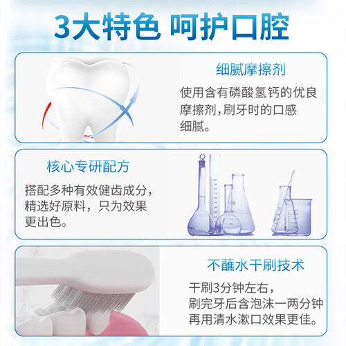 此款牙膏具有缓解牙菌斑的效果,能够控制牙菌斑的形成,有利多种牙齿疾病的防护,帮助维持健康,降低患龋齿率。