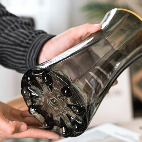 选用玻璃材质打造,晶莹剔透且具有光泽感,美观大方。圆形的花瓶底部设计,受力面积大大增大,稳定性更强。