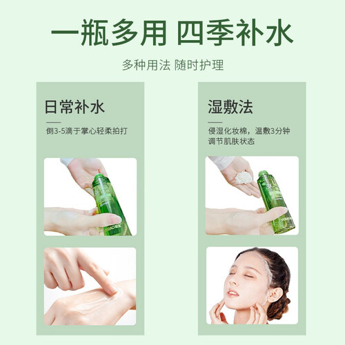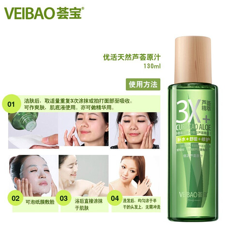 含新鲜芦荟精粹,温和好吸收,为肌肤注入水润活力,为肌肤快速补充水分,亮肤淡印,舒缓肌肤,令肌肤水润细嫩。
