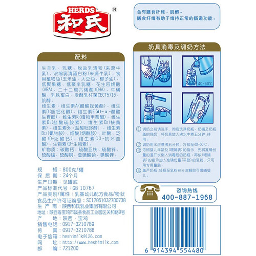 和氏 幼儿配方 奶粉