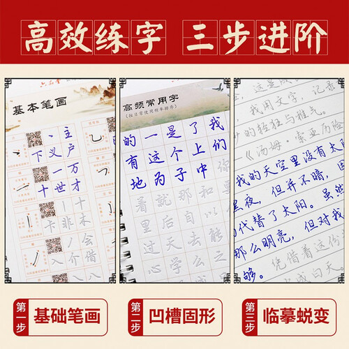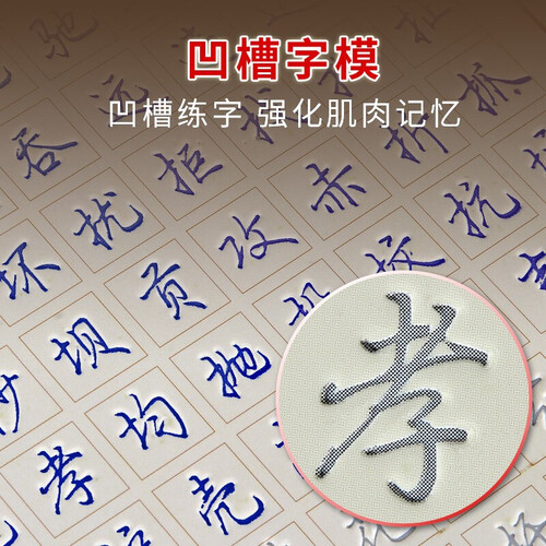 这是一款凹槽版练字帖,可反复使用,字迹随时间慢慢消失,节约成本。同时采用三个阶段练习,循序渐进让你写出一手好字体。