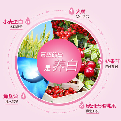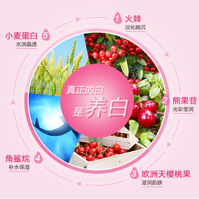 蕴含熊果苷成分,可深层焕肤亮白,助您养成白嫩肌肤。此外,利用小麦蛋白成分,促进肌肤吸收,让你肌肤更水润保湿。