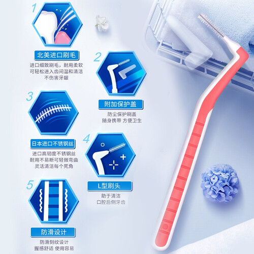 采用北美进口刷毛,质地柔软,清洁使用不损伤牙龈,提升清洁效率。自带防尘保护刷盖,方便随身携带,更加卫生。