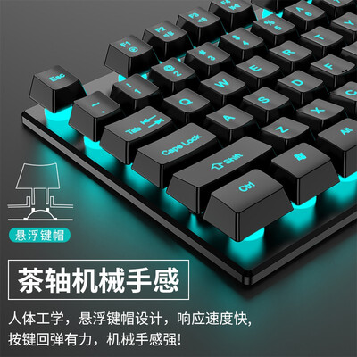 采用人体工学流水线键位布局,适应人手敲击键盘运动弧线,手感舒适,久用舒适,悬浮键帽设计,响应速度快,按键回弹有力。