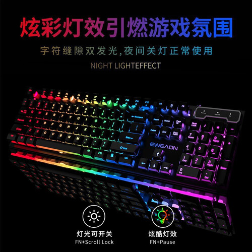 精致的悬浮键帽设计,灵敏度高,手感舒适;其酷炫的背光灯设计,不刺激眼睛,玩游戏更顺心。