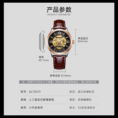 选用优质牛皮打造的表带,有着鳄鱼皮般的大气纹理,质地柔软细腻,佩戴十分的舒适。采用全透底盖设计,机械脉搏跳动清晰可见。