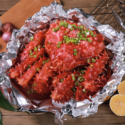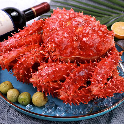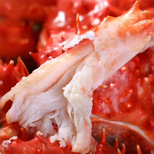帝王蟹肉若白脂,入口时爽滑鲜嫩,口感软绵清香,是逢年过节的好菜品。拥有鲜亮喜庆的鲜红甲壳,威武霸气的外表彰显着魅力。
