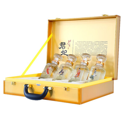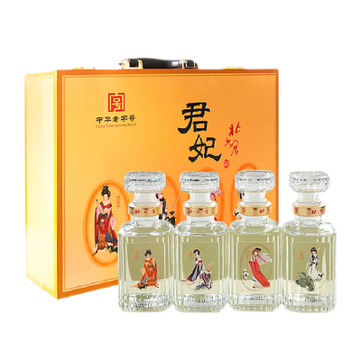 精选优质的大蛇眼红高粱、东北小麦和纯澈江水为原料,粮香宜人,入口柔顺。包装融入四大美人元素,古典雅致。