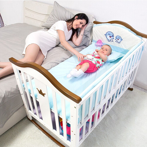 采用新西兰的松木原料,实木材质天然无害,同时增加床体稳定性,摇床的模式让宝妈们更省时省力,方便又耐用。