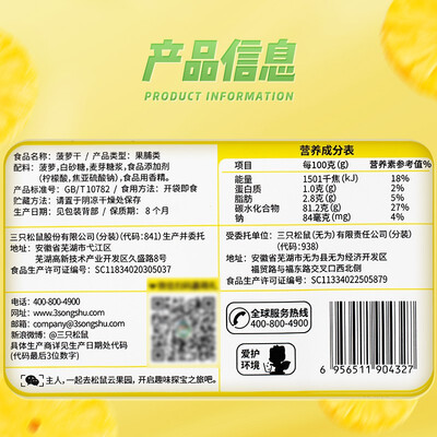 原产地新鲜直采的优质菠萝,制作成的果干肉质饱满口感惊艳。采用慢烘干工艺打造而成,精准控制制作的时间与温度。