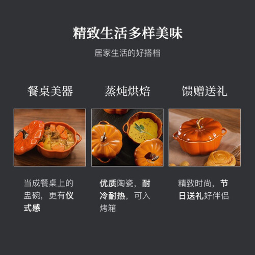 采用了俏皮的南瓜造型,在餐桌上能够成为一道独立的风景,时尚美观,盛装上可口的餐点,令人食欲倍增。