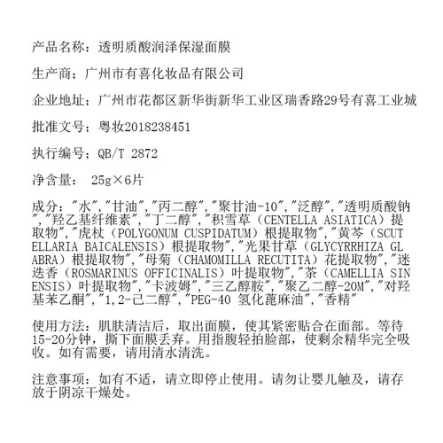 如果你的肌肤黯然失色,干燥起皮,那么,这就是属于你的面膜!透明质酸保湿原液,给肌肤带来水润动力,清爽保湿,肌肤不粘腻。