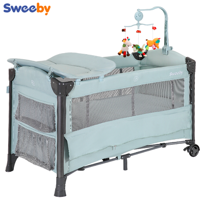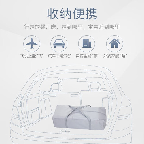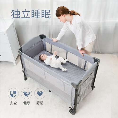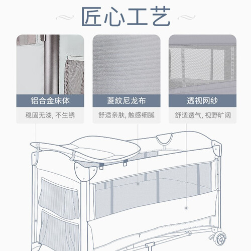 尼龙布的包裹设计,让这款婴儿床使用更加柔软,孩子乱动也不担心会受伤。