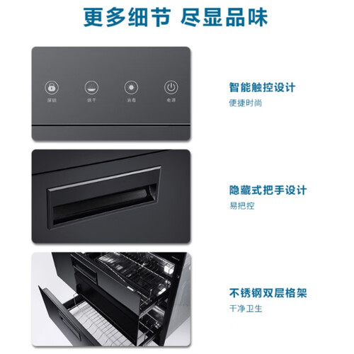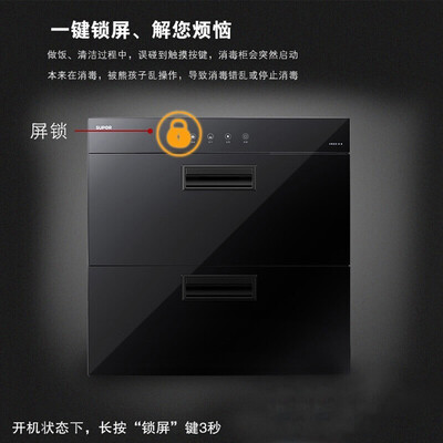 大容量双层隔架设计,便于餐具有序存放。支持一键锁屏,防止误触影响正常运作,家用更安心。搭载镜面反射内胆,助力强力消毒。