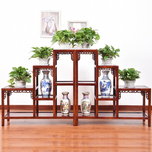 花架造型大方,色泽光亮,摆在客厅里更显大气。榆木木料制作,结实坚硬,耐腐蚀性强,花架使用寿命更加长久。
