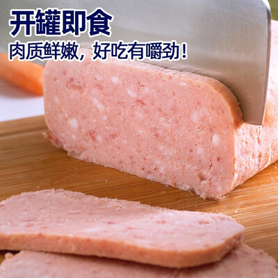 午餐肉罐头,中华老字号。选用整块猪肉,肉质有嚼劲,略瘦。添加了玉米淀粉,口感清爽,减少油腻感。