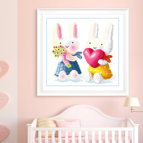 憨态可掬的卡通兔子,呆萌可爱,更有助于营造出温馨的居家氛围。优质的德国安格绣布,结实牢固,耐磨耐撕扯。