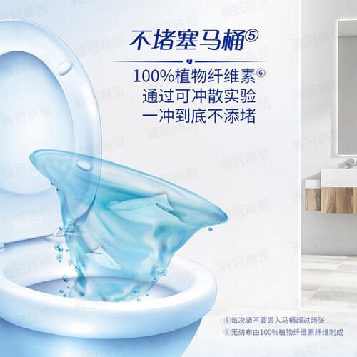 采用可冲散的无纺布制作,无香精的大尺寸设计,贴心不脏手;纯净舒适的RO纯水添加,柔和的体验效果,使用更安心。